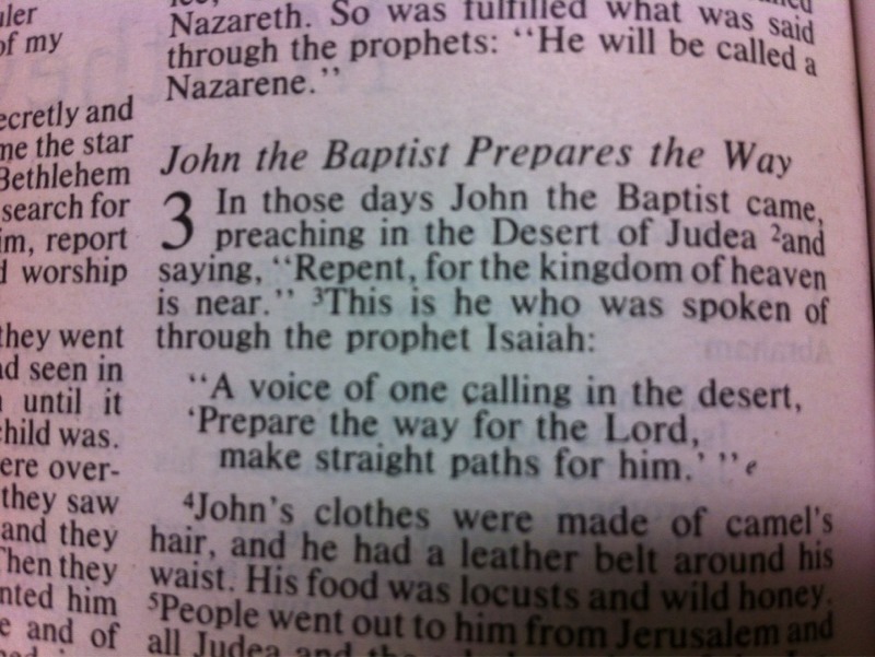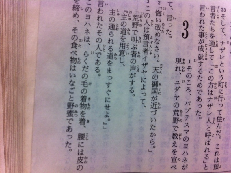 聖書箇所です。 マタイの福音書3章1-3 (ミカエル)