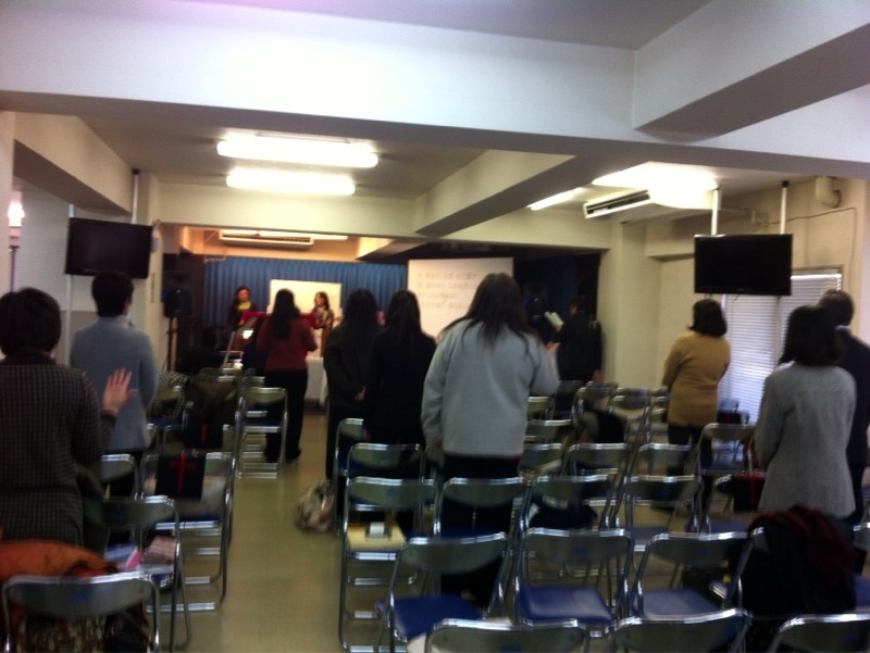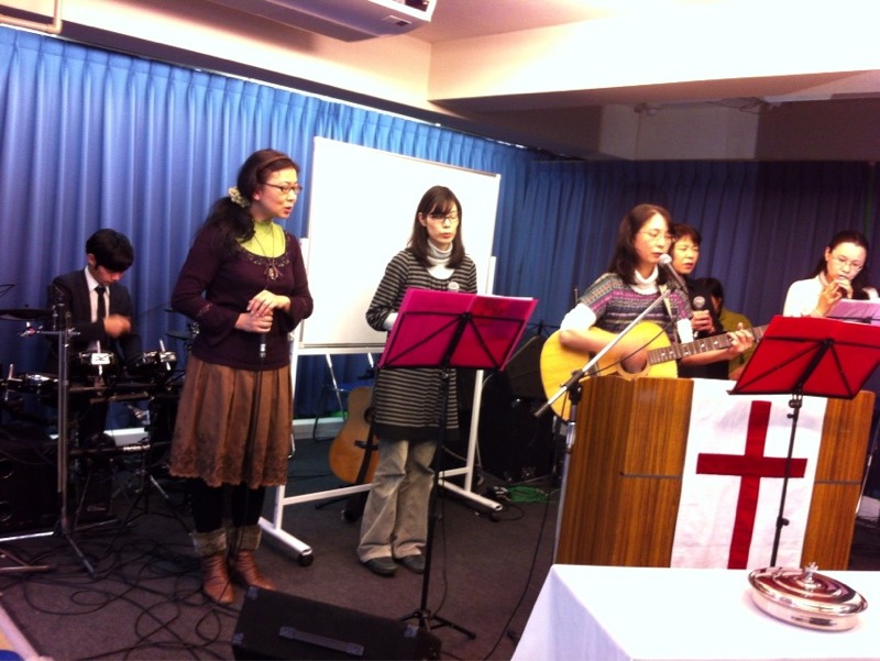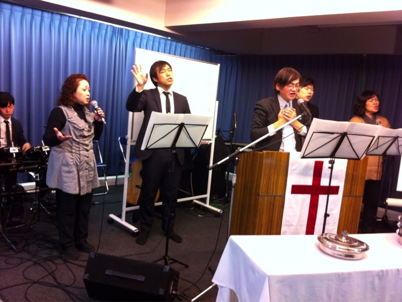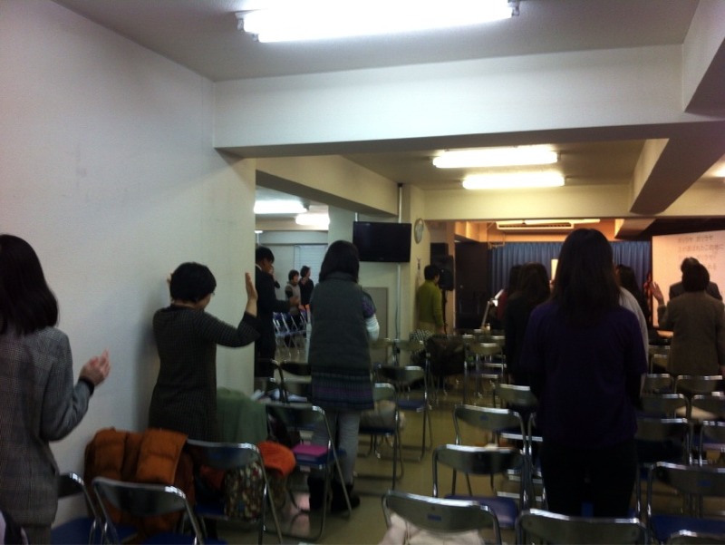 牧師賛美の時です。 全員で賛美しています。 (ミカエル)