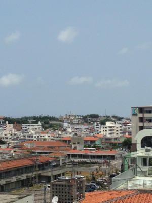 高いところの左の方の茶色の建物が、豊見城市立中央公民館です。 賛美大会は明後日の8時からです。