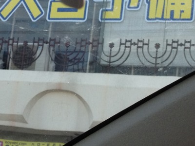 柏駅に向かう途中、昔々柏教会が礼拝していた場所を通過しました。よく見るとメノラー(イスラエルの燭台)の模様が見えます。