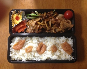 そろそろ暑くなってきたので、梅は全体に散らしました。殺菌作用です。(本当は、混ぜ込んだ方がよいそうですが。)