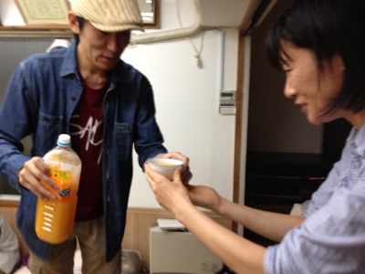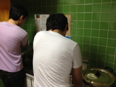 PV見ながら、出来上がるのを待ち望む男性陣。お腹空いた〜。