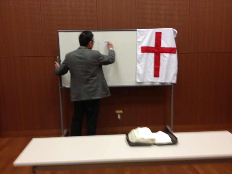 セミナー後半を取り次ぐパウロ秋元牧師。聖書「エペソ6章10節」から学んでいます。