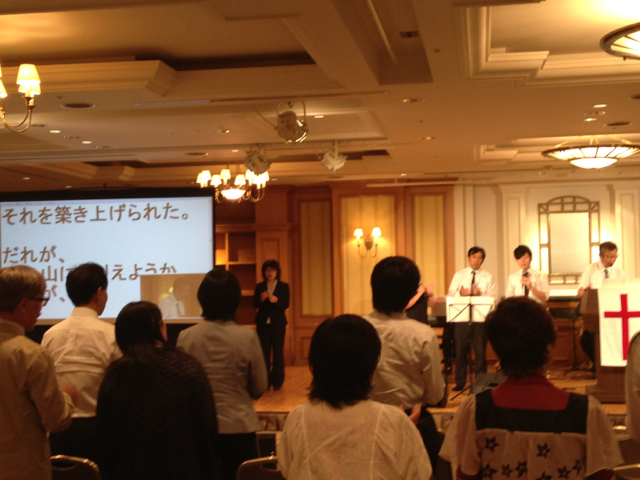 山川牧師、何やらiPadでご奉仕のようです。
