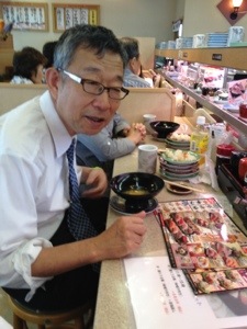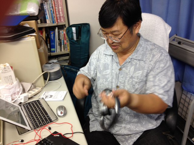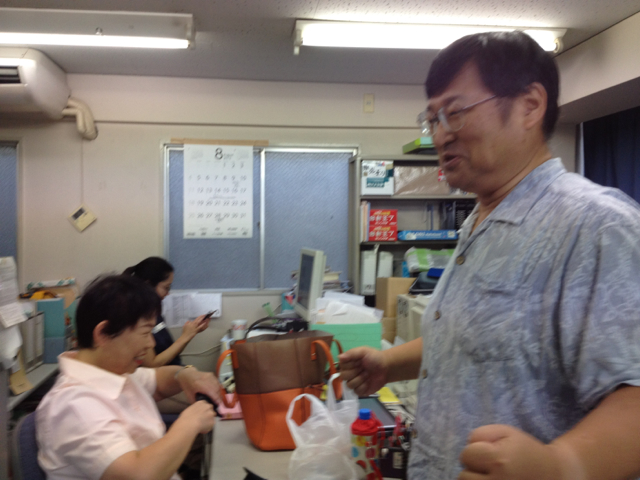 朝からずっと座りっぱなしだった永藤牧師、立ち上がりました。 大魔神?のようにポーズ!気分転換にお昼を買いに行かれます。