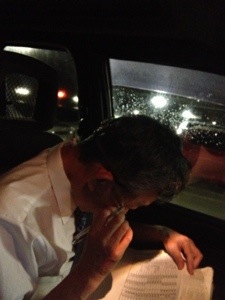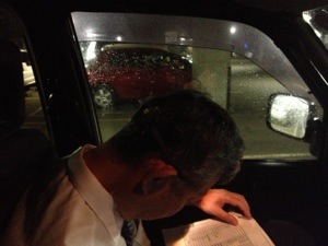 聖会後、ホテルの駐車場の灯りを頼りに、審査、です。