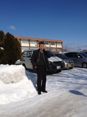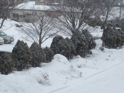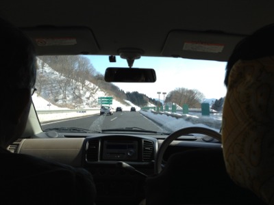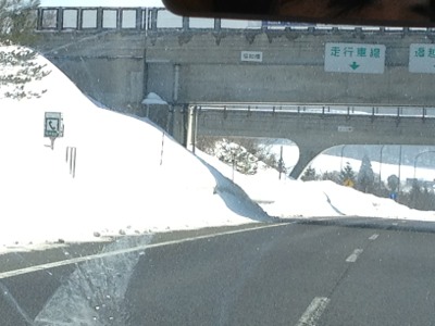 昨日の夕方から、仙台から秋田に移動しました。途中のサービスエリアでの雪です。
