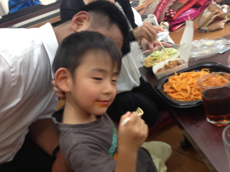 ヨシュアくんは、ランチタイムです!ナポリタンスパゲティ!