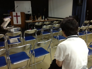 インターネット委員会のブログネタを探しに来られた広田牧師。 こちらも写真を撮らせていただきました。