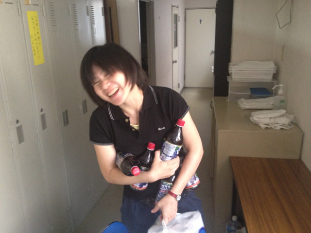 両手いっぱいにジュースやらトイレットペーパーやら抱えて帰ってきた愛ちゃん。 「手伝うとかしたらどうなの⁉」と呆れた様子。