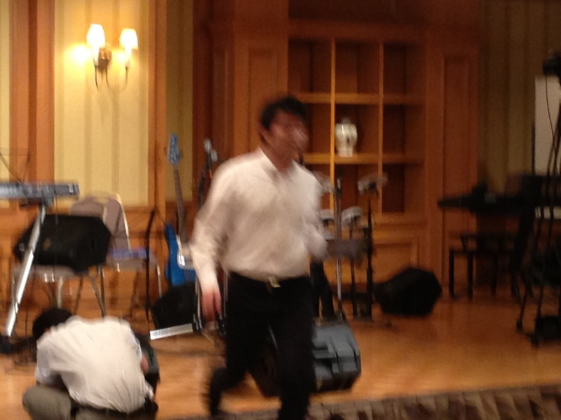 東京カリスマ聖会担当、ヨセフ笹沼牧師。会場内に気を配りつつ、チェック体制強化中でいらっしゃいます。
