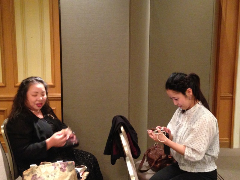 ホテルのゴージャスな雰囲気に溶け込むまどかさんと正座のミカエルさん。(笑)