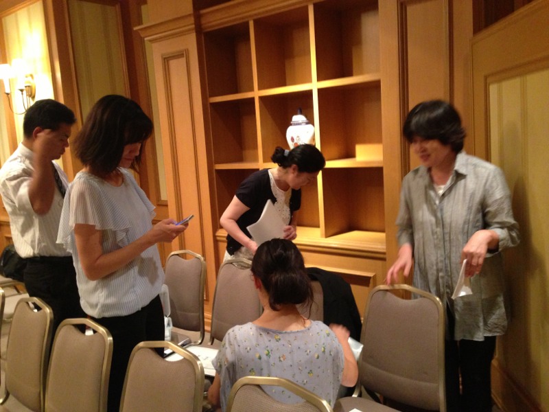 後方の飾り棚あたりはアットホームな雰囲気ですが、ご案内係り、アッシャーの方々が忙しく動いています。