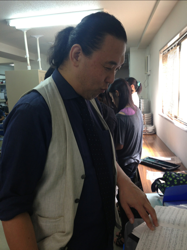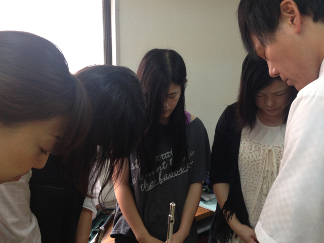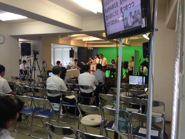 出番に備える池田さん。今夜のカリスマ聖会でも演奏されます。楽しみです!