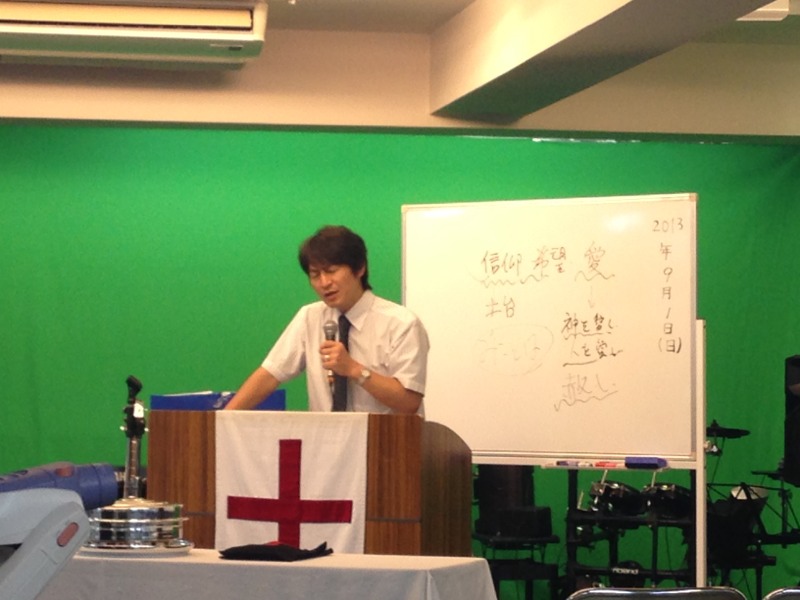 早朝礼拝メッセンジャーヨセフ三本松牧師。会堂に入って即あれ?なぜここに譜面台があるの?とチェックが入りました!設営リーダーの目は鋭いですよ!(笑)カリスマ聖会でもよろしくお願いいたします!