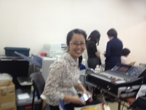 カリスマ聖会では設営担当の藤井さん!真剣にお祈り?してます。