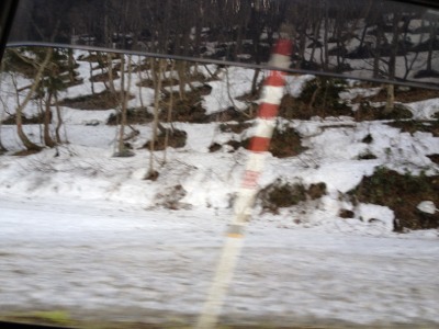 三沢から弘前へ バックの地図は青森県。冷蔵庫にいるような寒さです。