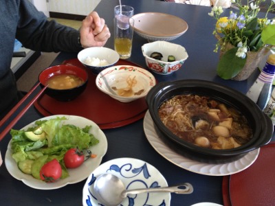弘前で、御夕飯に預かりました。スキヤキをお腹いっぱいいただきました。食べてる途中で写真を撮るのを思い出しました。なので食べかけ中で失礼します。