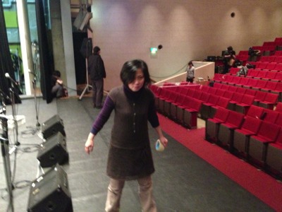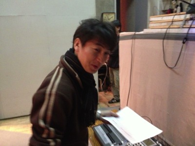 PA担当の益川くん、ケーブルのセッティングをしています。