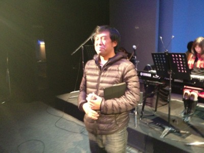 サウンドチェックをしている笠原牧師! アップすぎ!