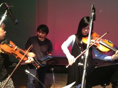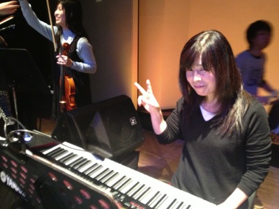 リハーサル中で、「音がデカすぎ」と言われている藤田さん!