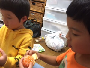夕食後、みんなでミカン!