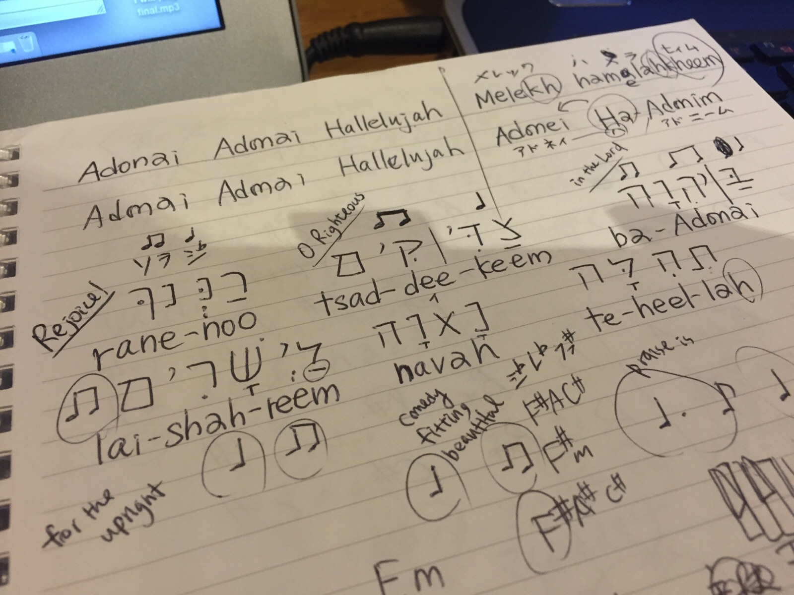 ヘブル語の楽譜にしたときの表記が難しい(笑)ぞー!shoko