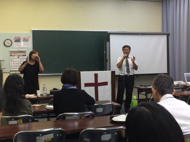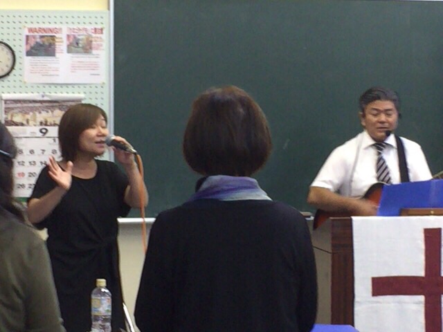 クロスロードのお二人が賛美をリードしています!沖縄エルサレム教会のメンバーにとっては懐かしい感じ! Debora