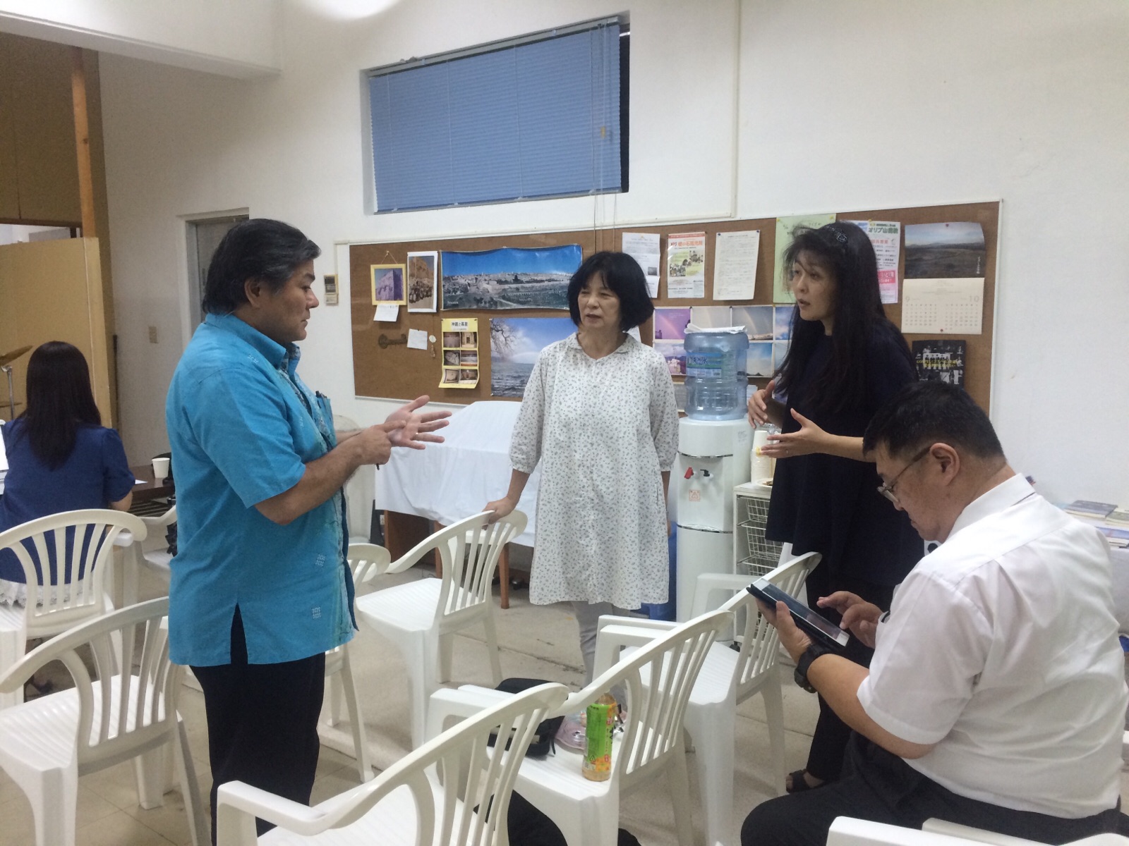 休憩中です。 明日、高速道路の通行規制があるようです。 聖会があるのでそのお話をされてます(´・_・`) 沖縄いのちの水の泉 ビオラ♪ Yuko