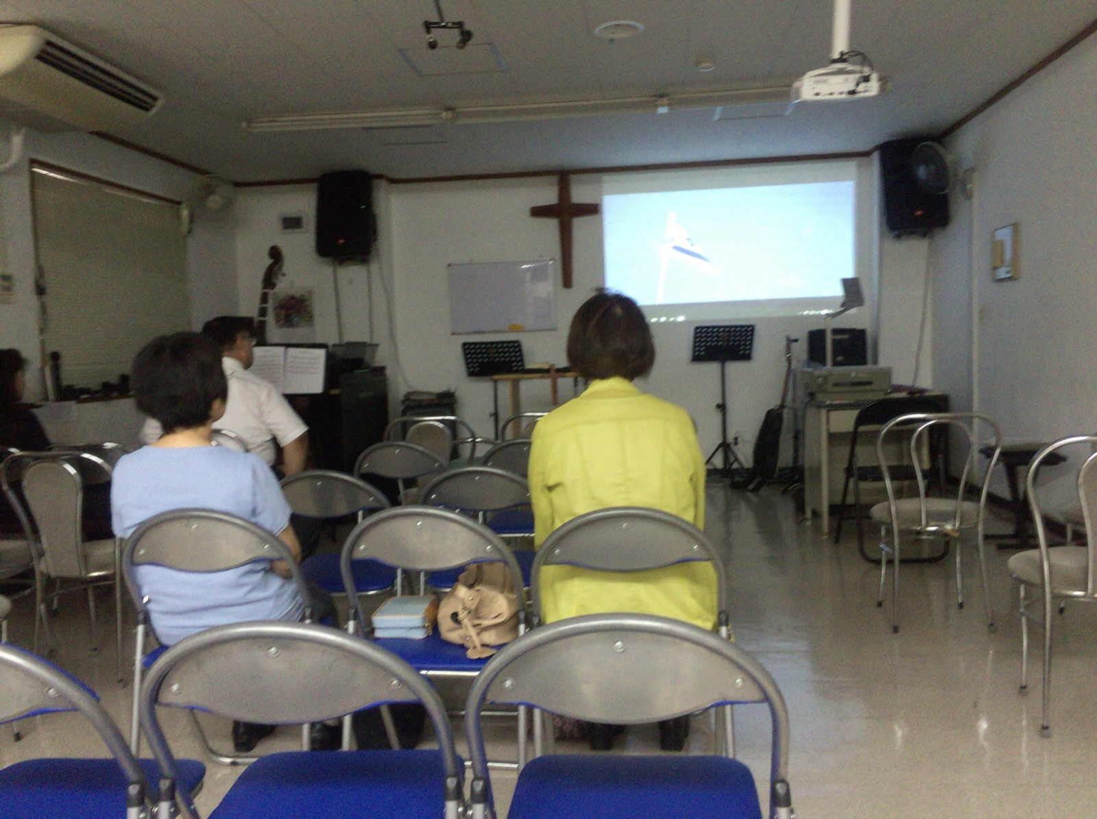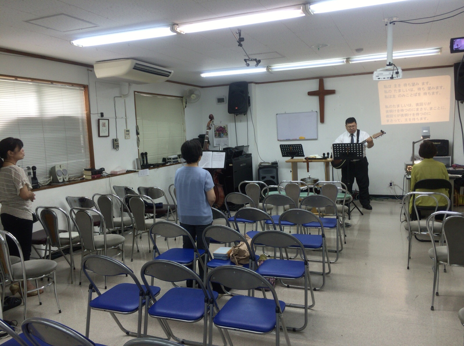 月曜礼拝の賛美の時です。 永藤さんの賛美リードとデボラさんの奏楽で、ご夫婦の息ピッタリです。 沖縄エルサレム sueko