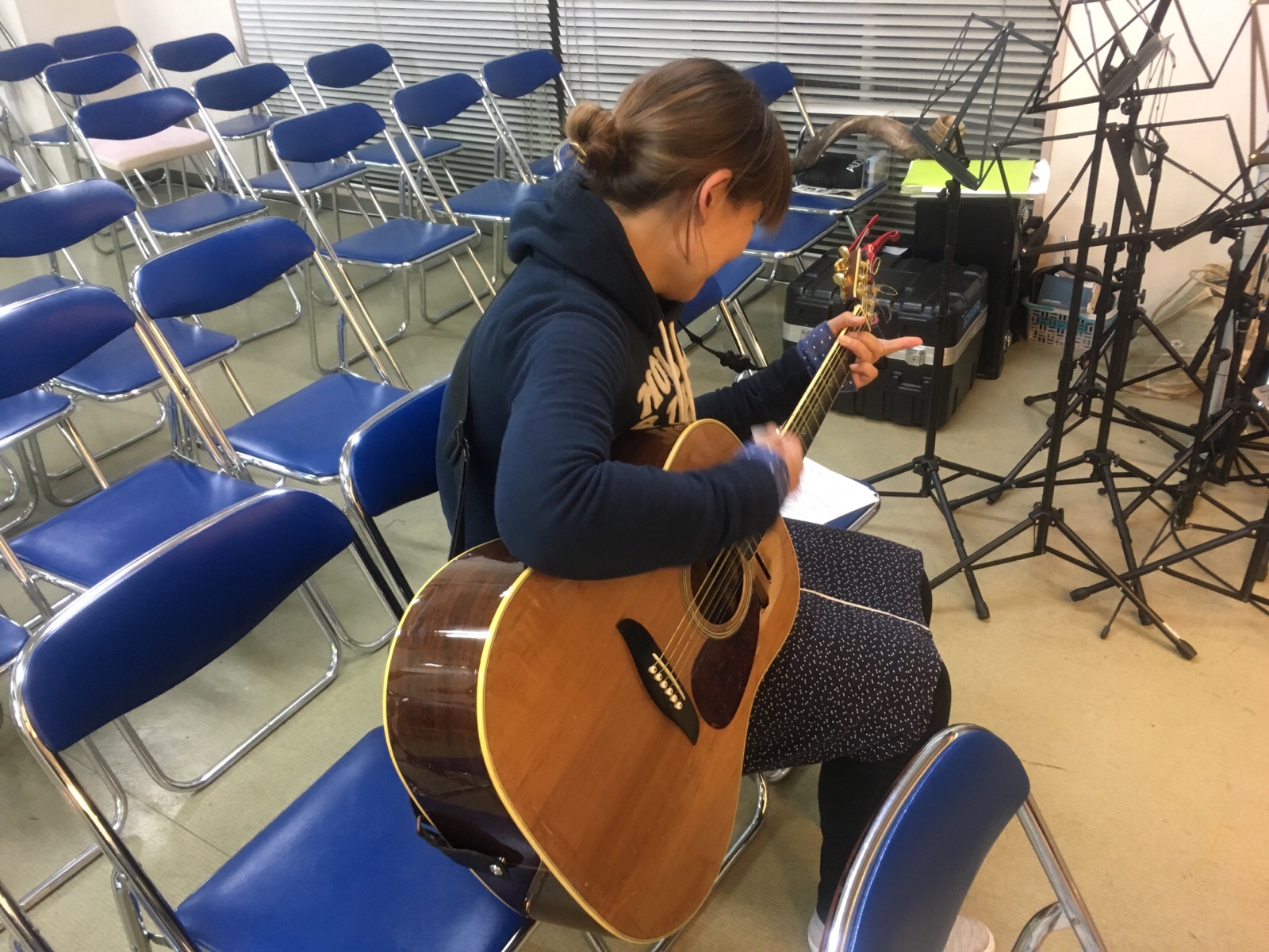 ゆみちゃん、じゃかじゃかギター弾いています。