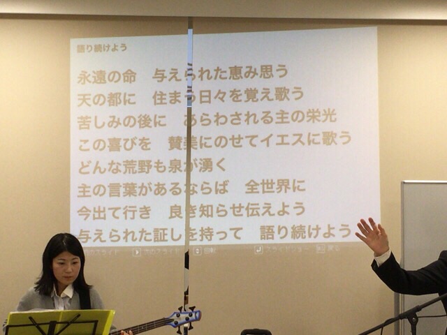 秋元さんが賛美を導きます。