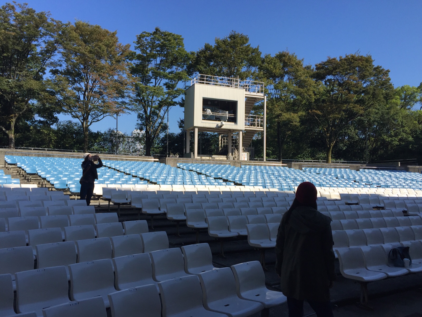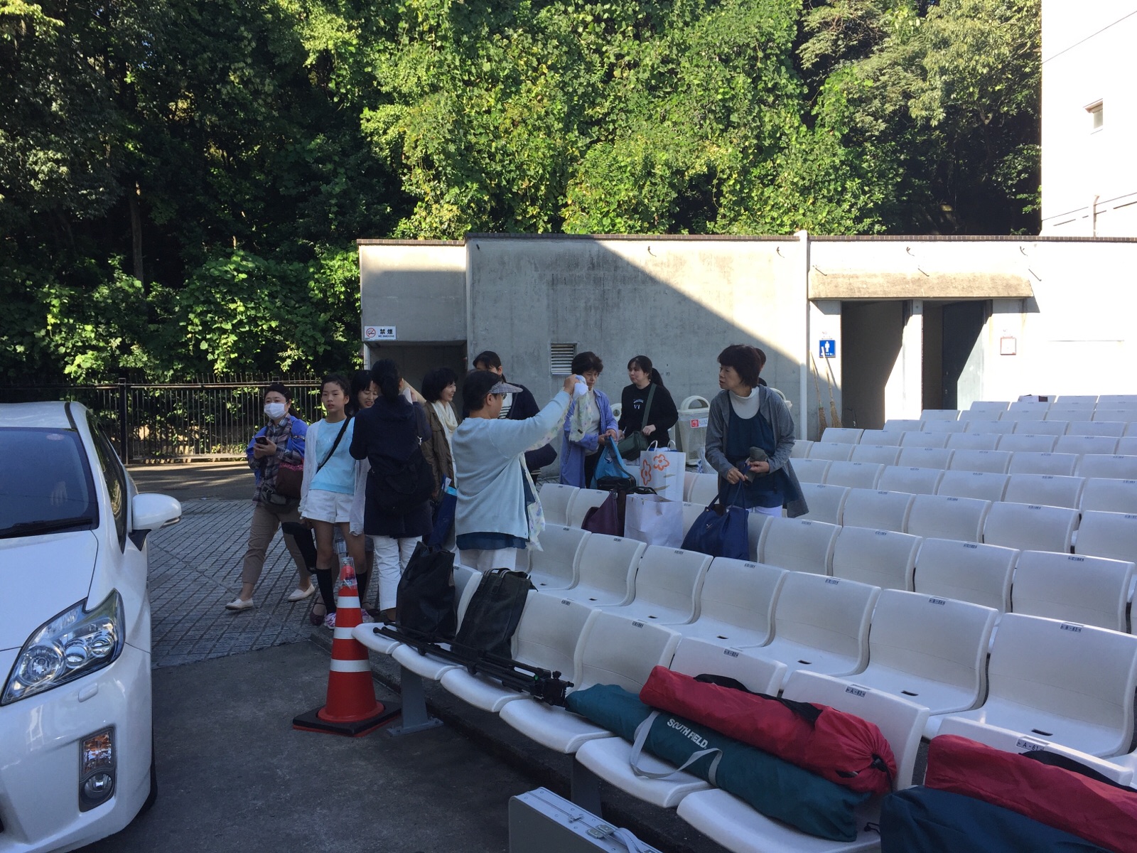 野外音楽堂てす。 まだ、開いてません!何人か集まってます! 大阪エステル