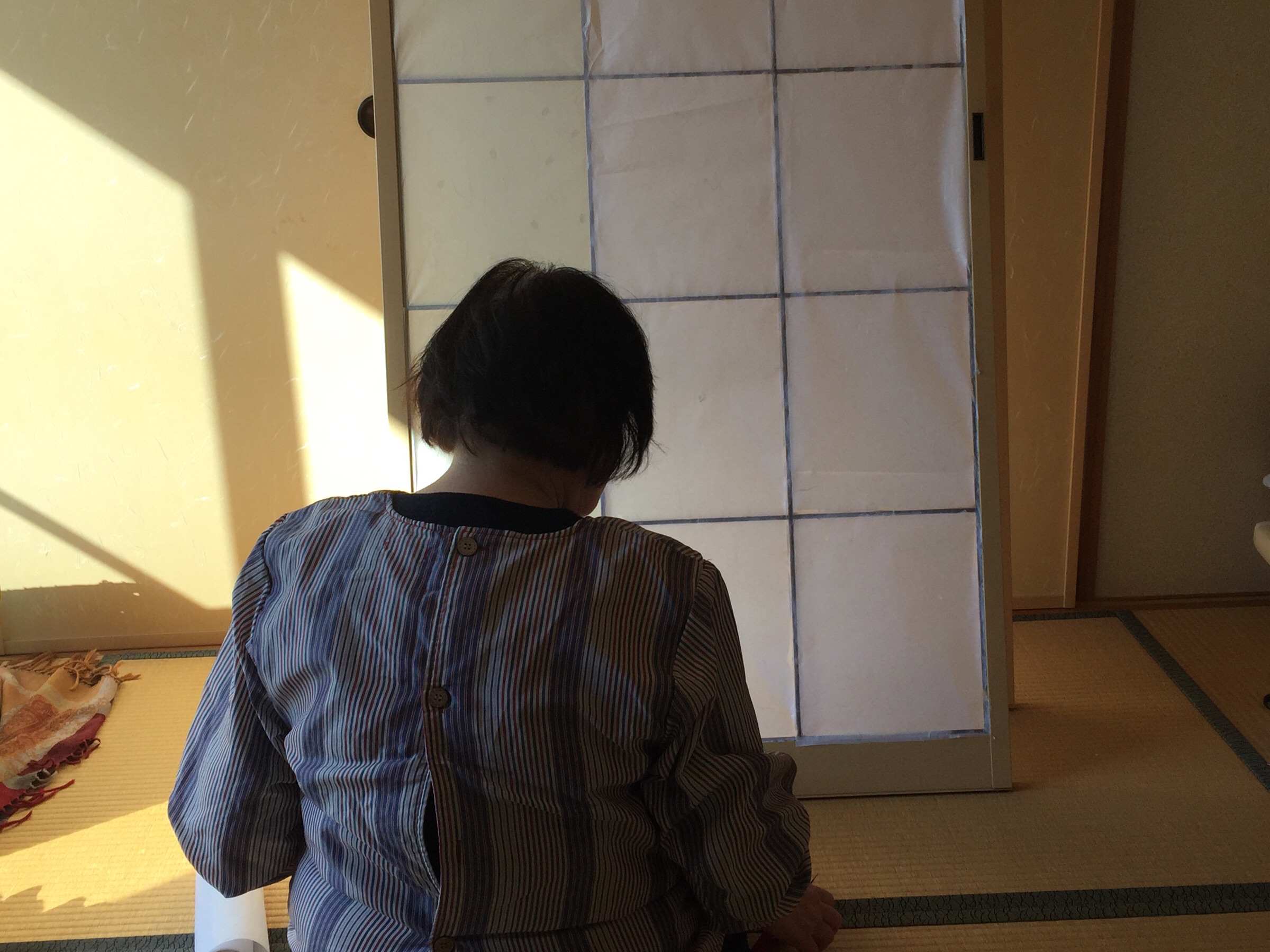 ばあばの腕前。 きれいに貼れたかな? 四日市 ハンナ