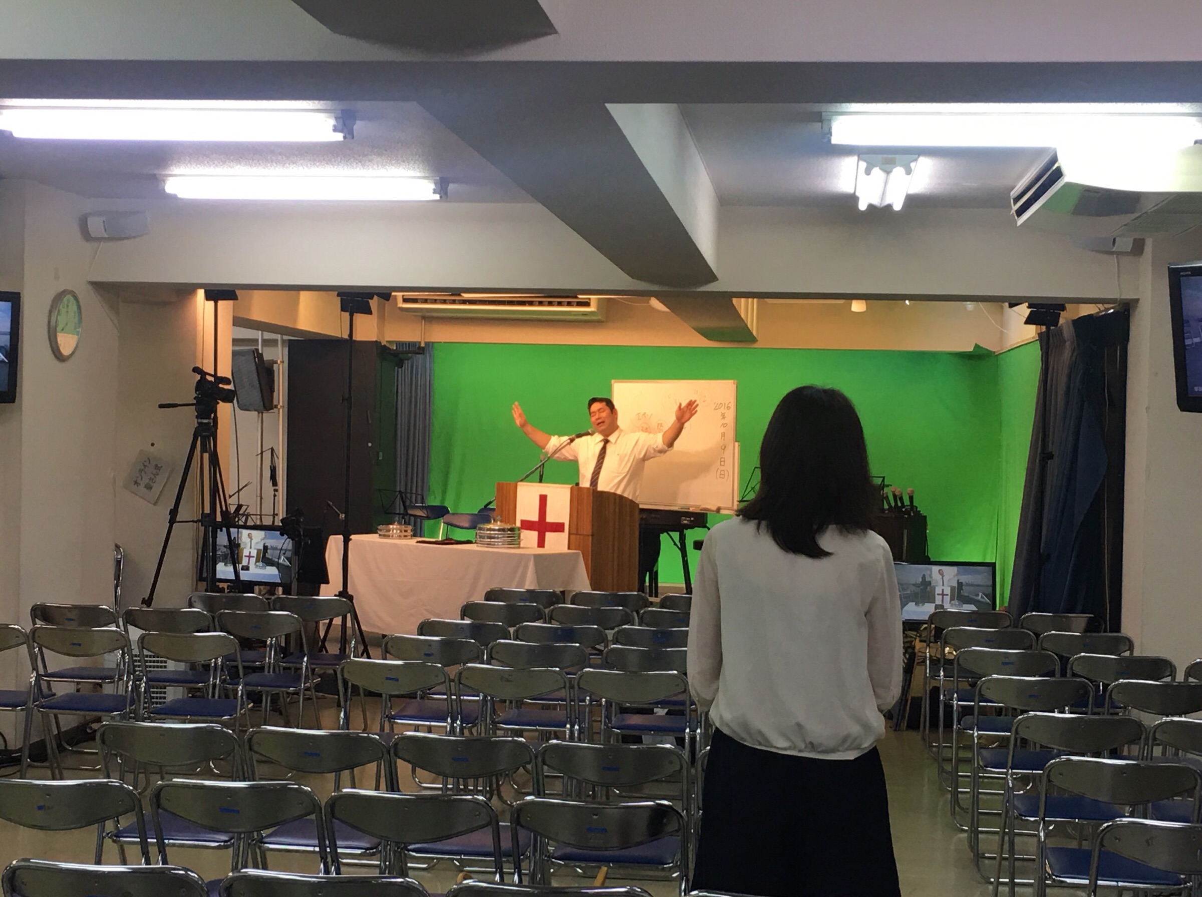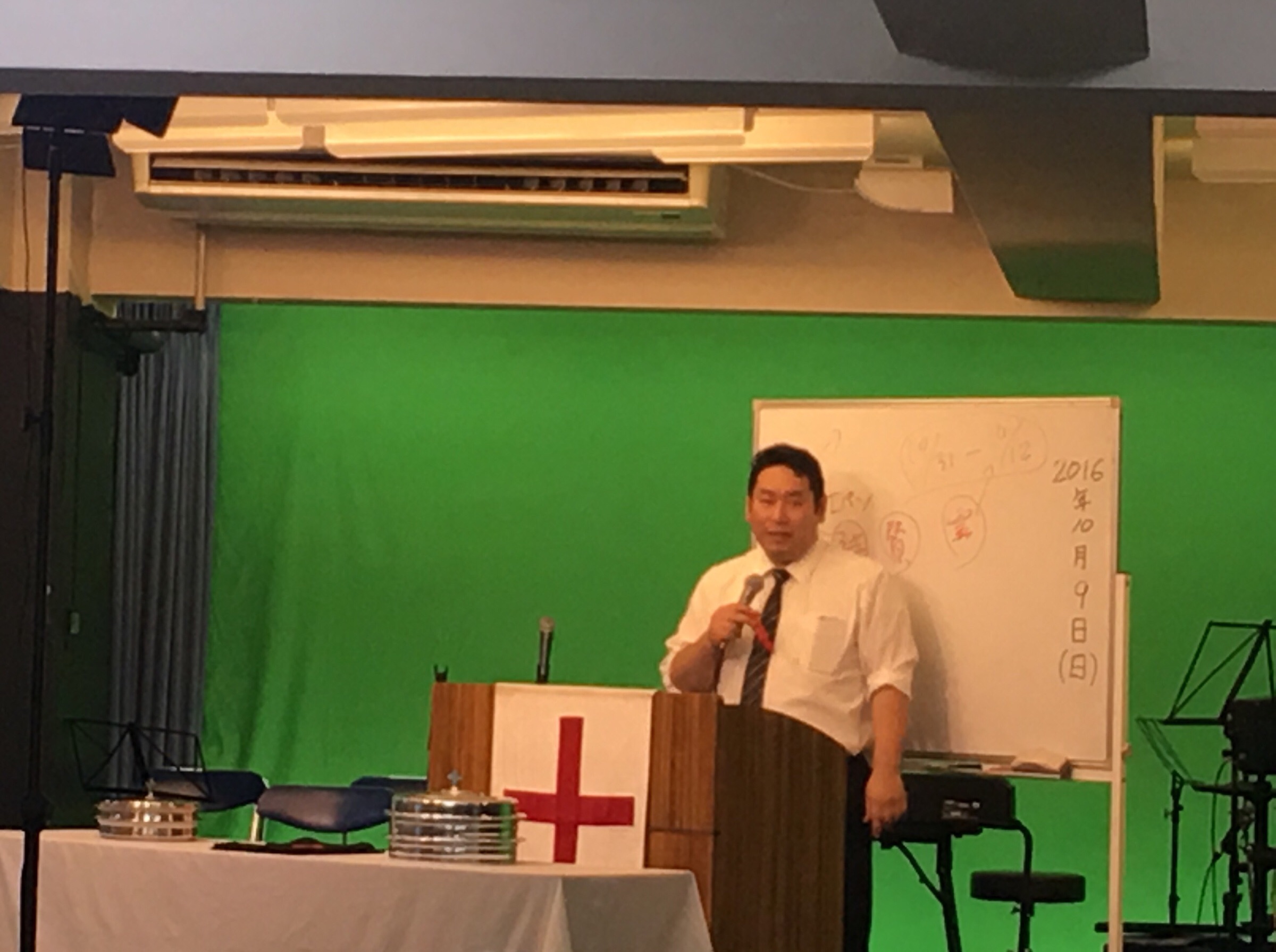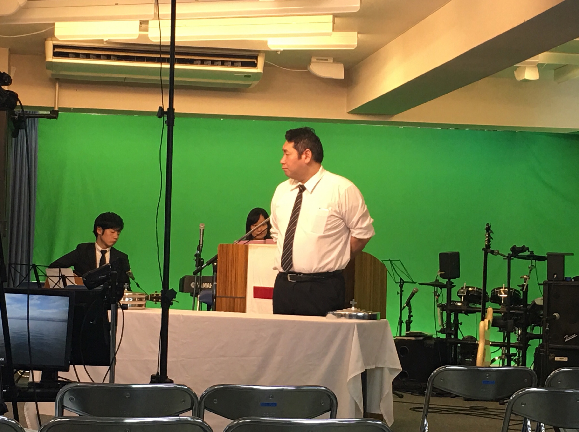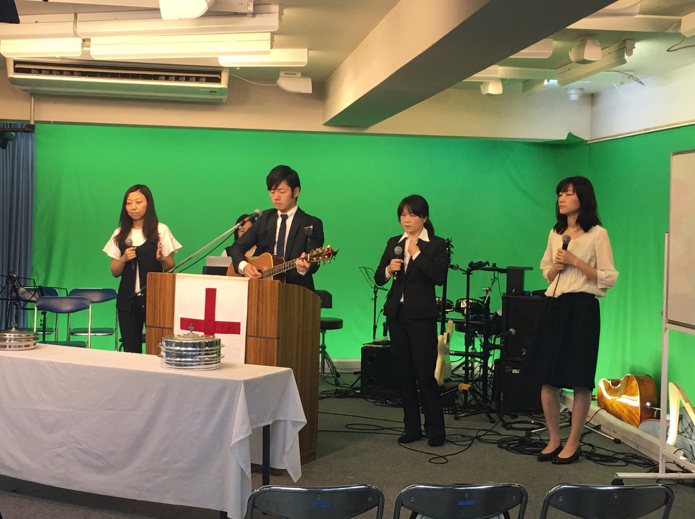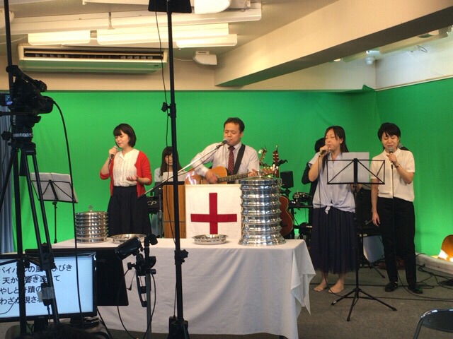 聖餐式の時。 メッセンジャーの真境名さんが導きます。