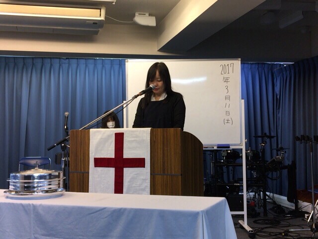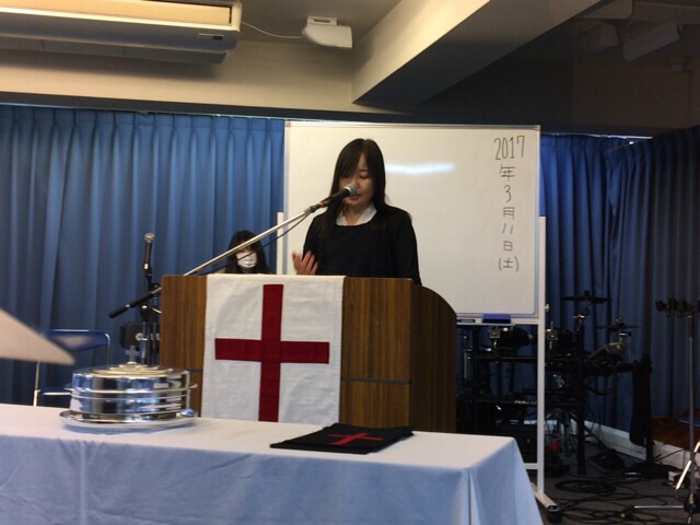 会堂では土曜礼拝がもたれています。エステル清水さんが聖餐式を導かれます。 東京Antioch