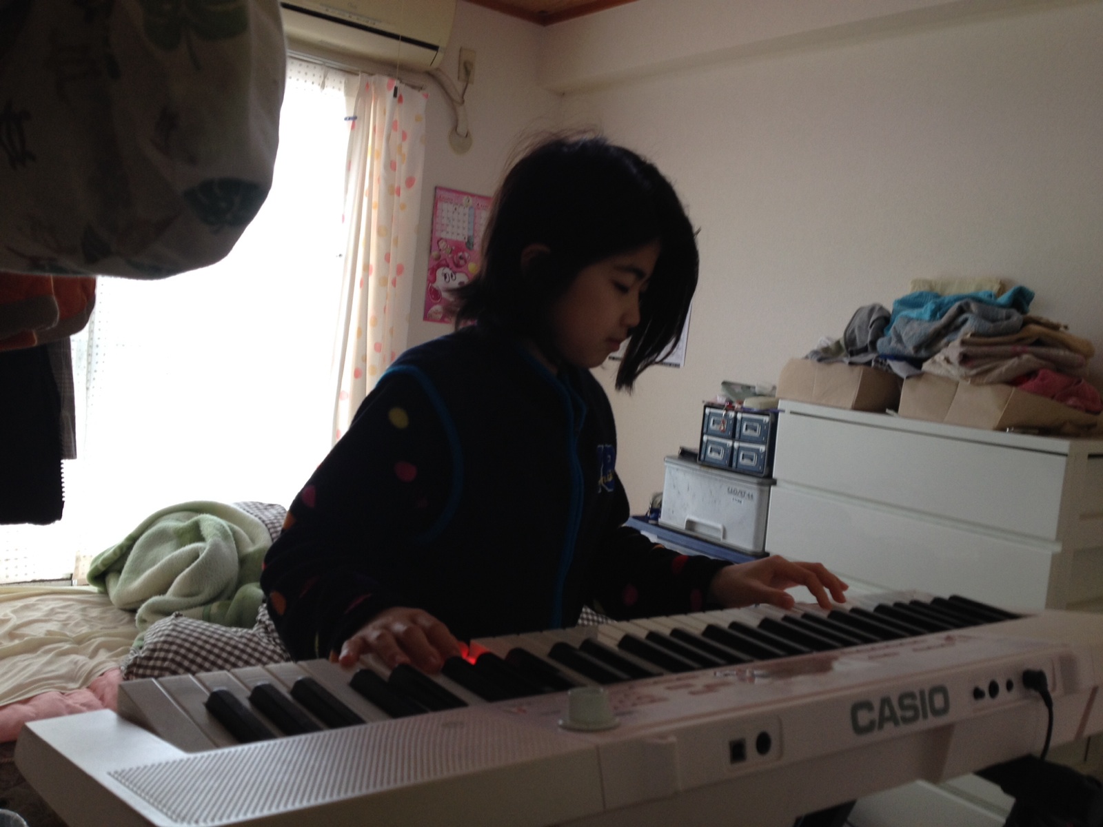 キーボードの練習しています。終わったら着替えて布団たたもうね。 東フィラデルフィヤ シオン