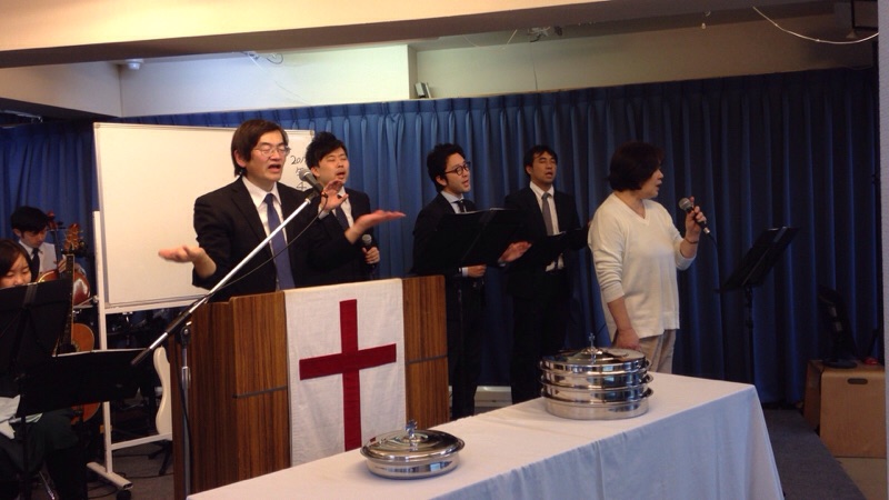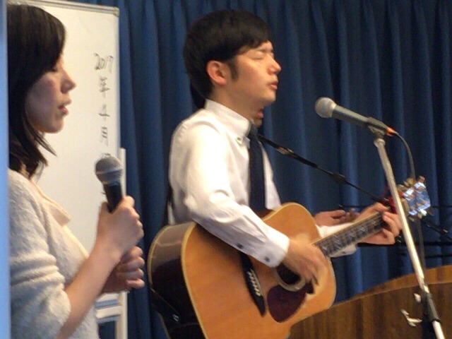 賛美リーダーは漆間さんです。 漆間さんも作詞作曲をしています。