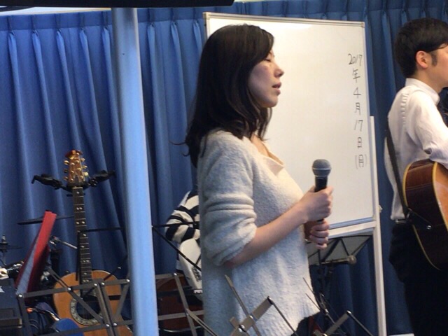 賛美に立ってる永野みぎわさん! 花色の作詞作曲者です。