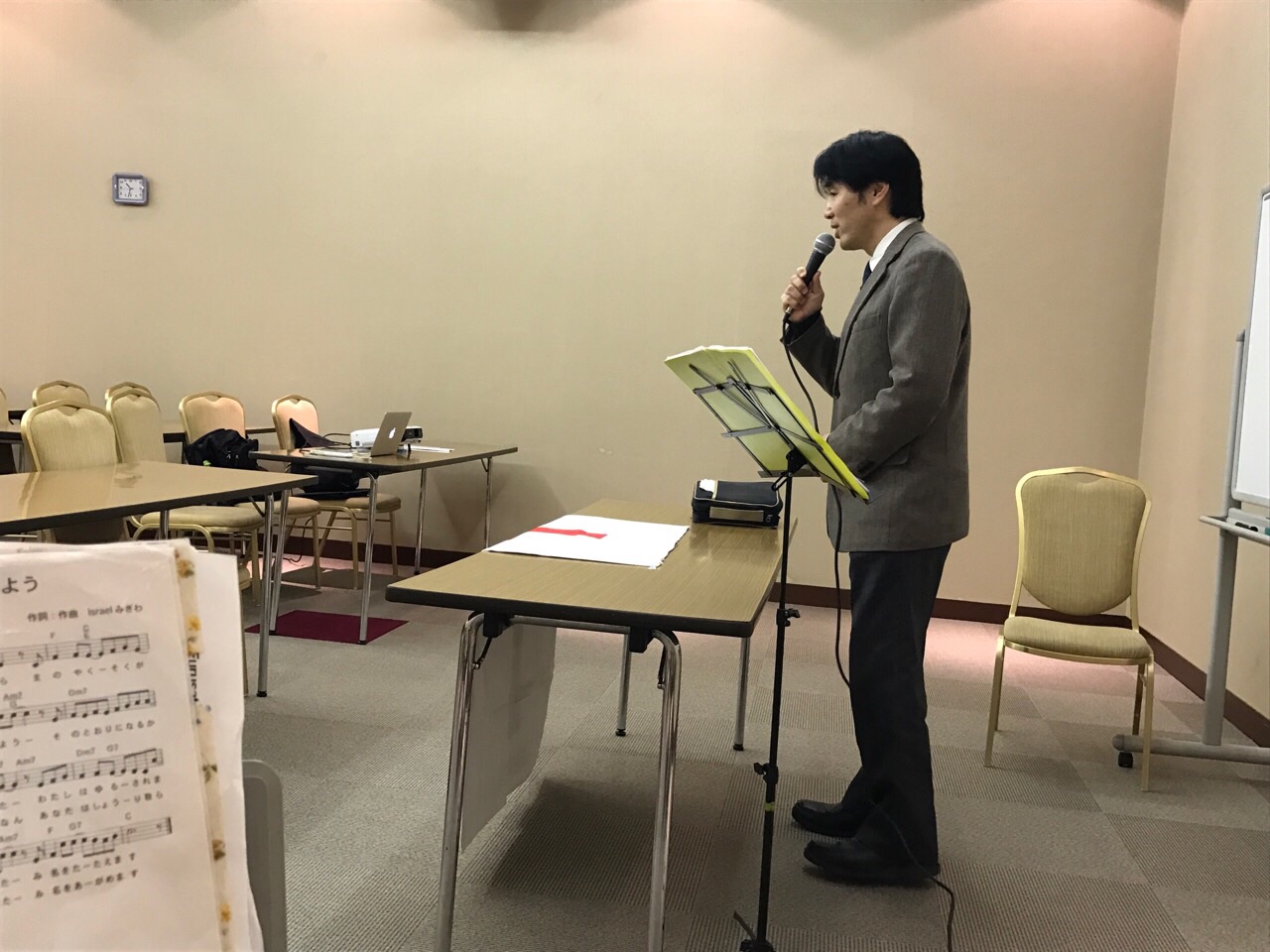 今テモテさんは必死?でプロジェクターの賛美用意をしています。