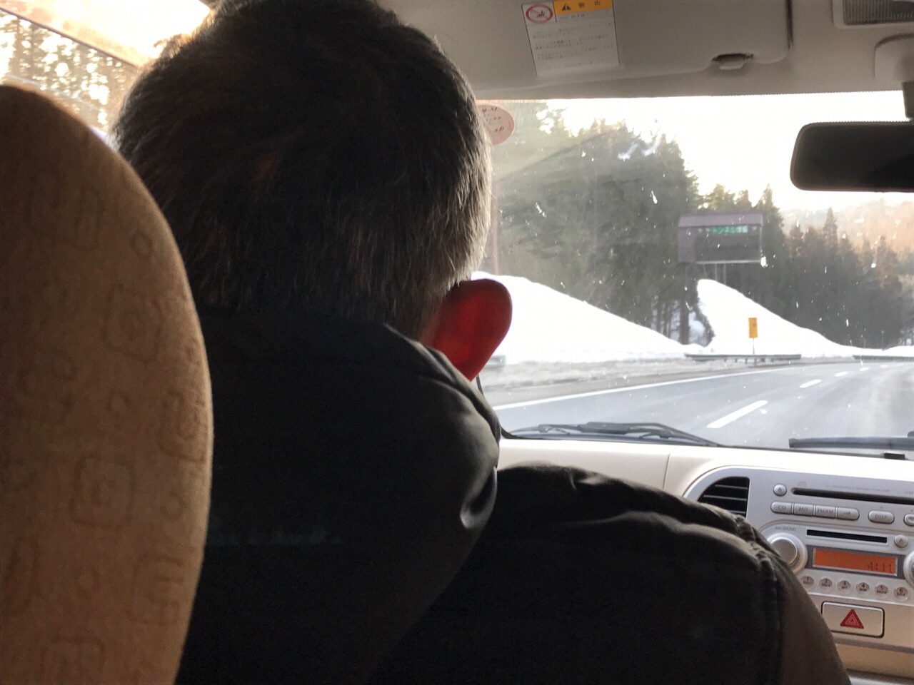 東北道の両脇は、まだまだ雪の跡… 小林は