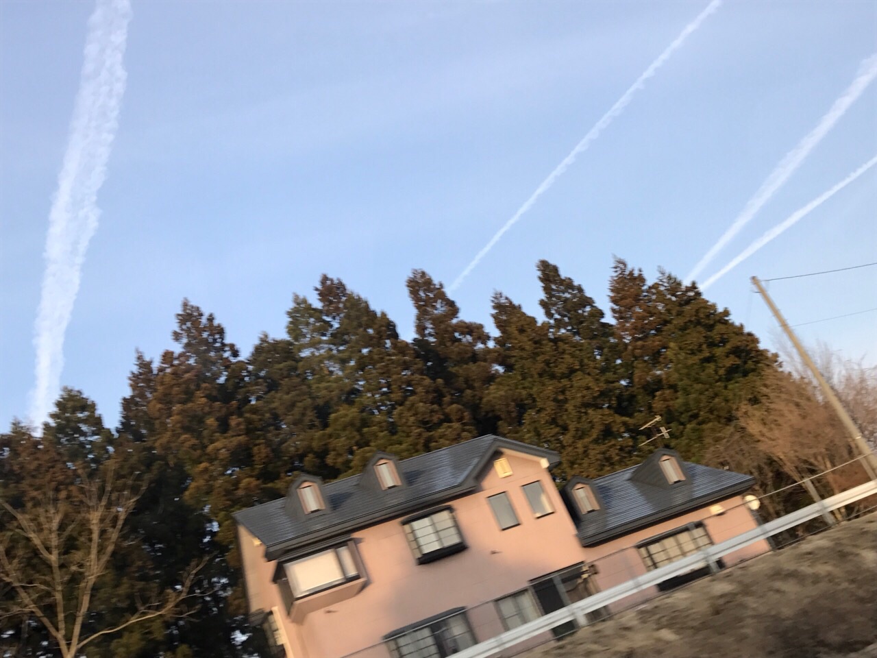 青森の空は飛行機雲が5本程、見えました。 小林は