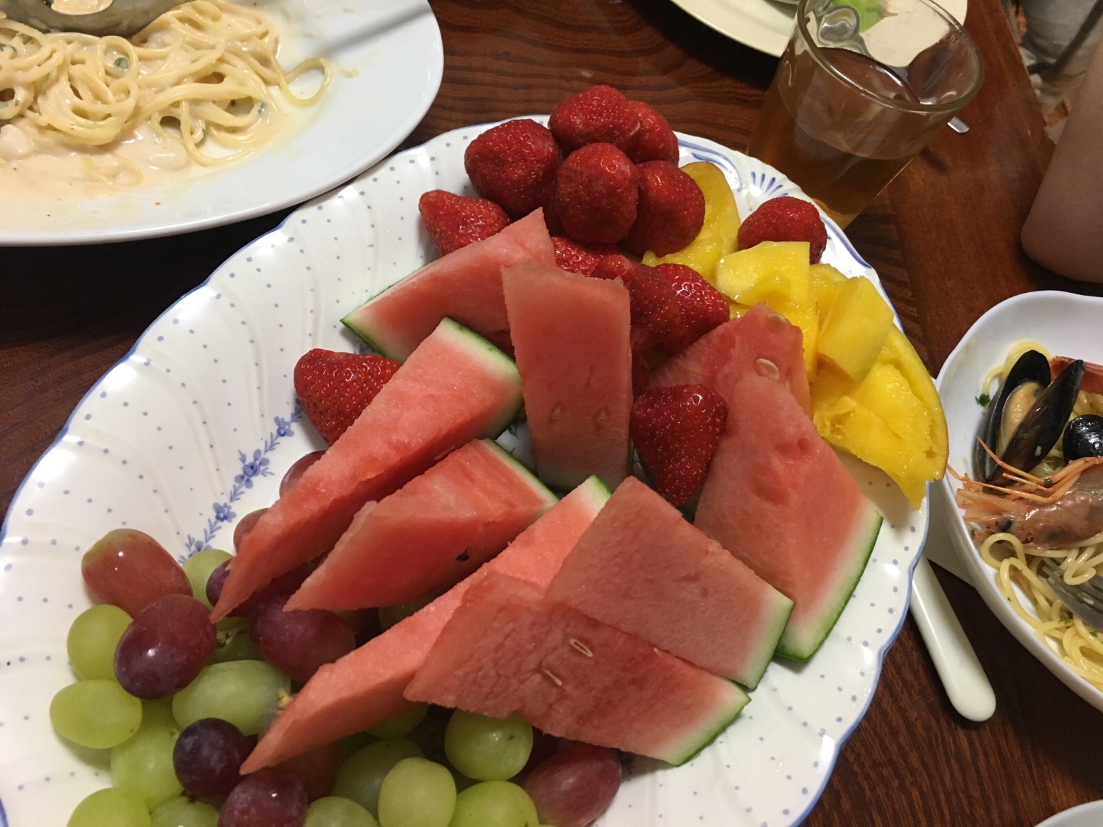 フルーツ! 熊本のスイカだそうです! 苺やマンゴーやぶどうもあるよ。