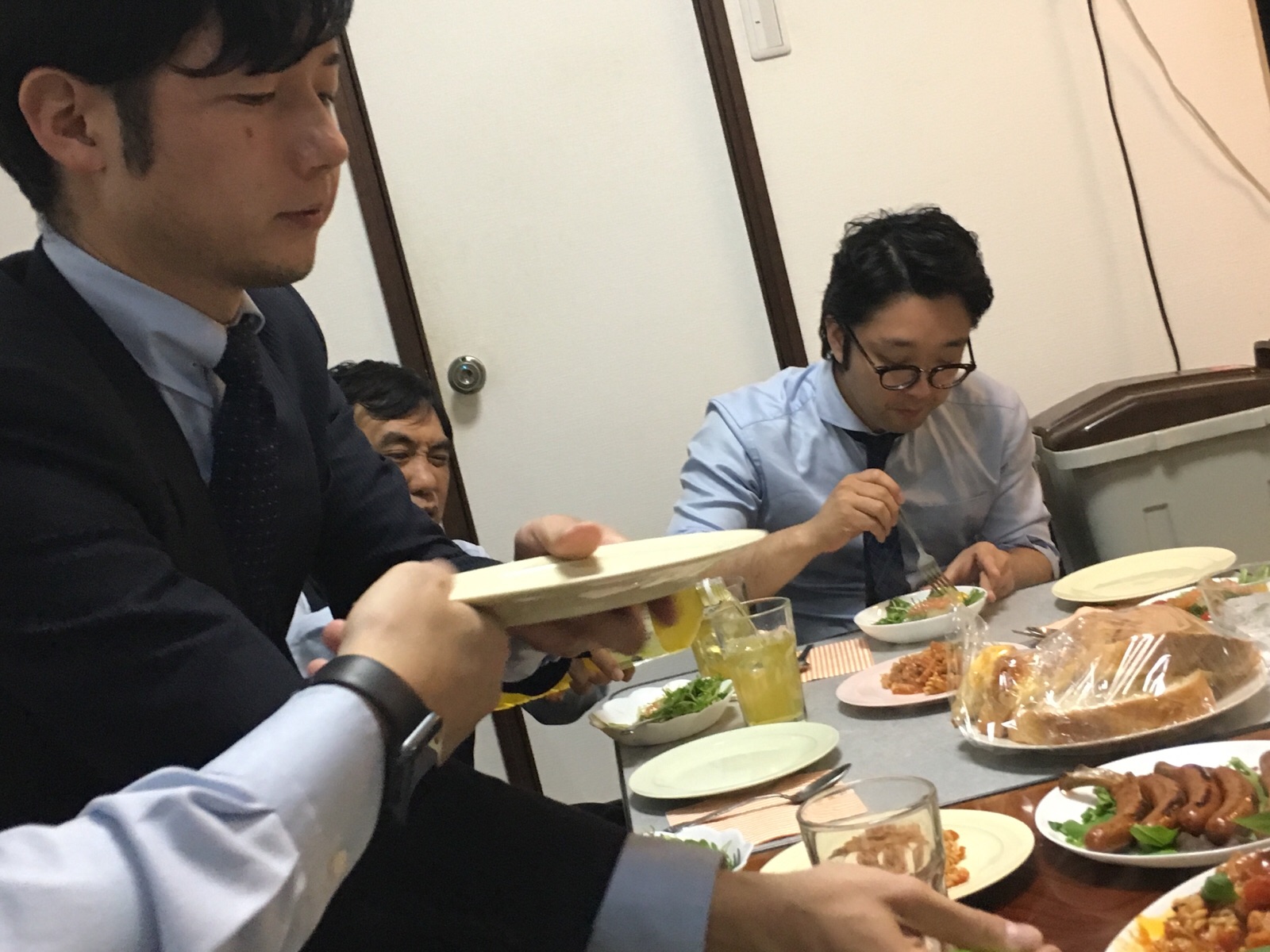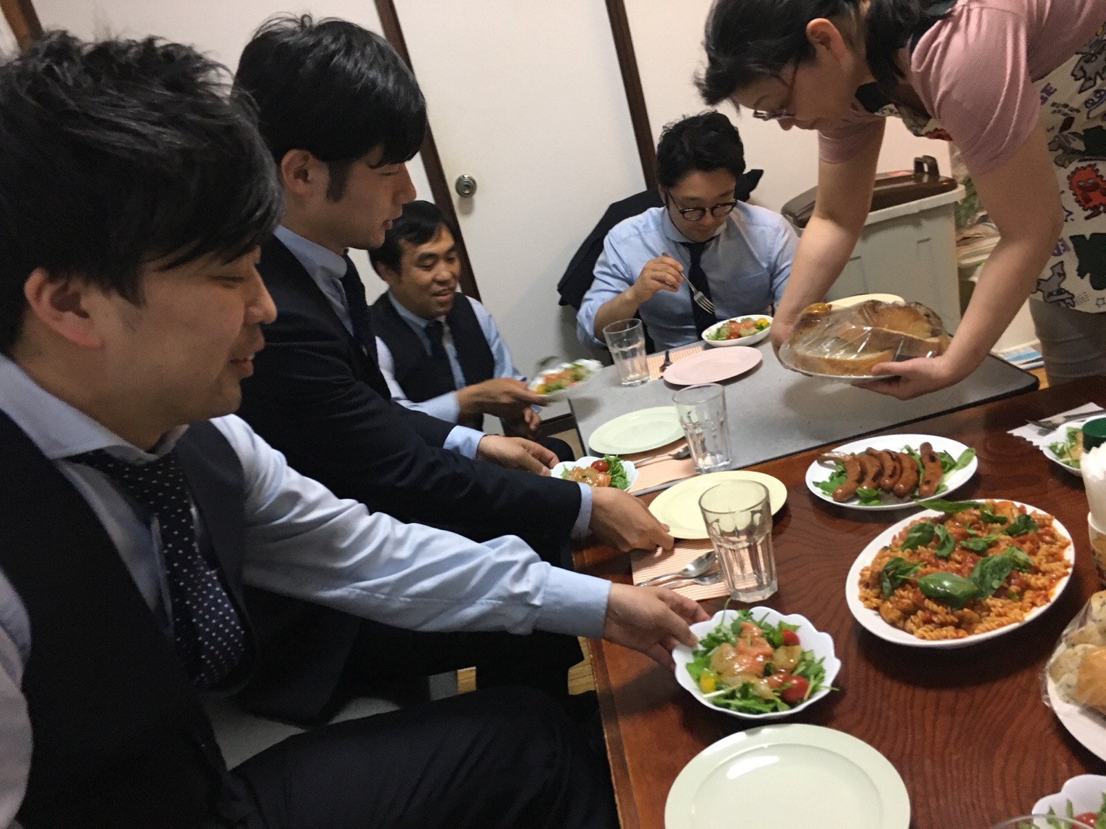 合間に話してます。