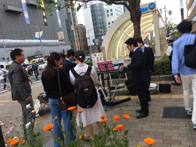路上ライブ。 とっても賑やかな所で。 三宮です。