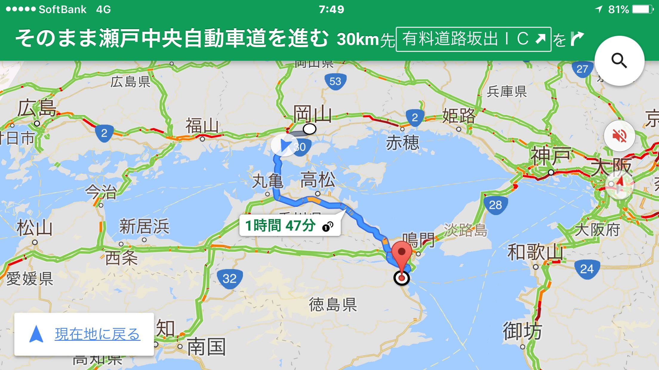 徳島までは1時間40分くらい。