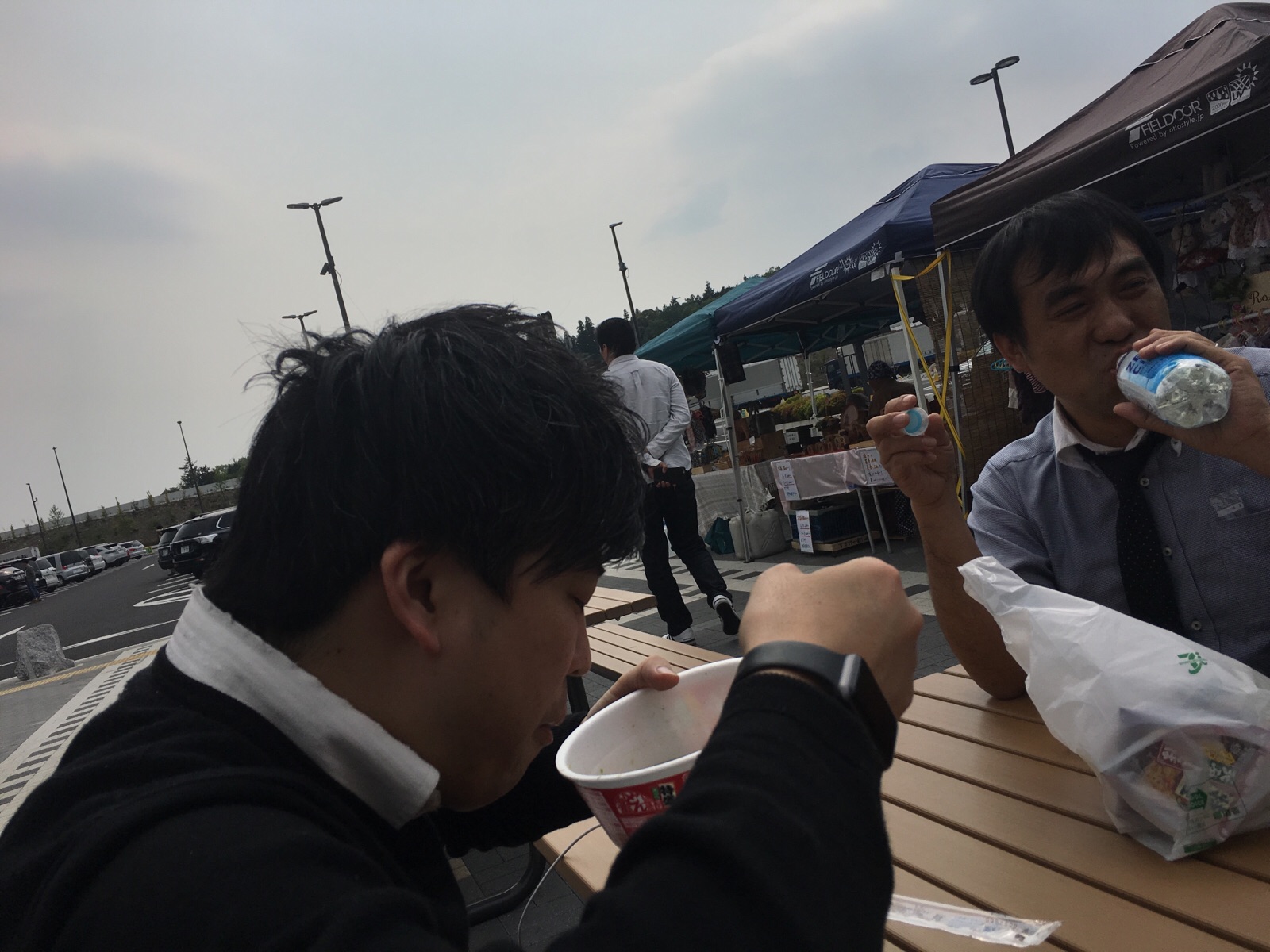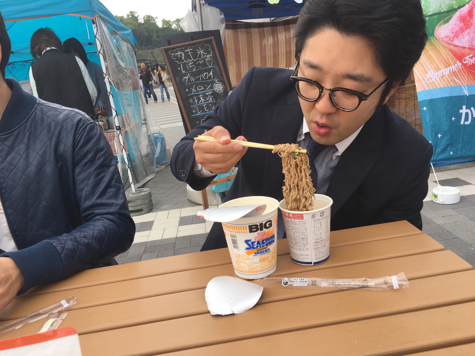 カップ麺を美味しそうに食べるサムエルさん!