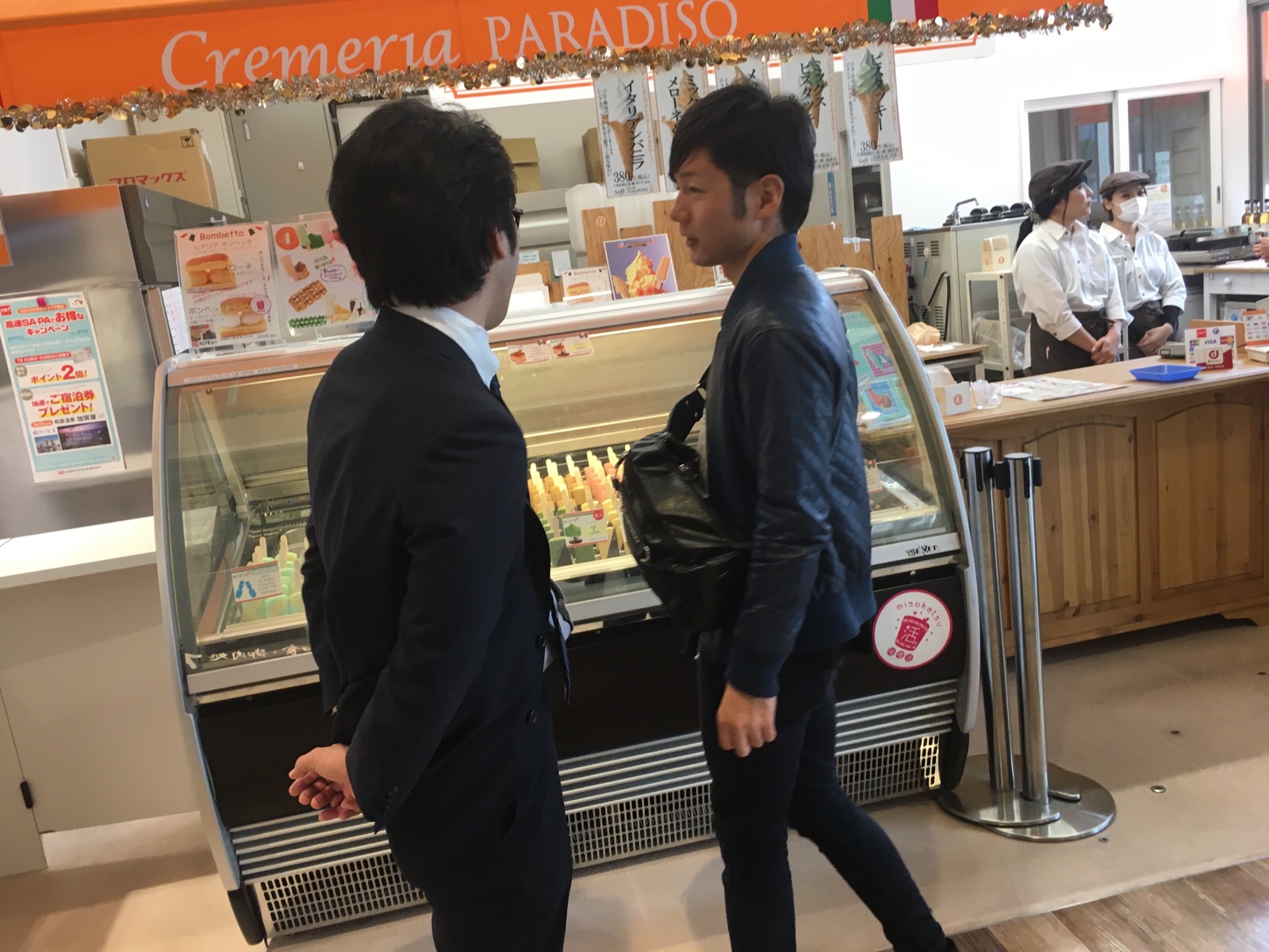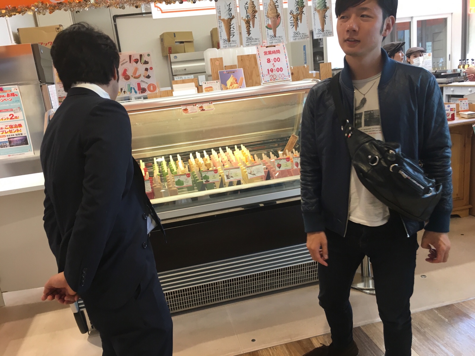 アイスの前でぶらぶらするダビデ君とヨハネ君。