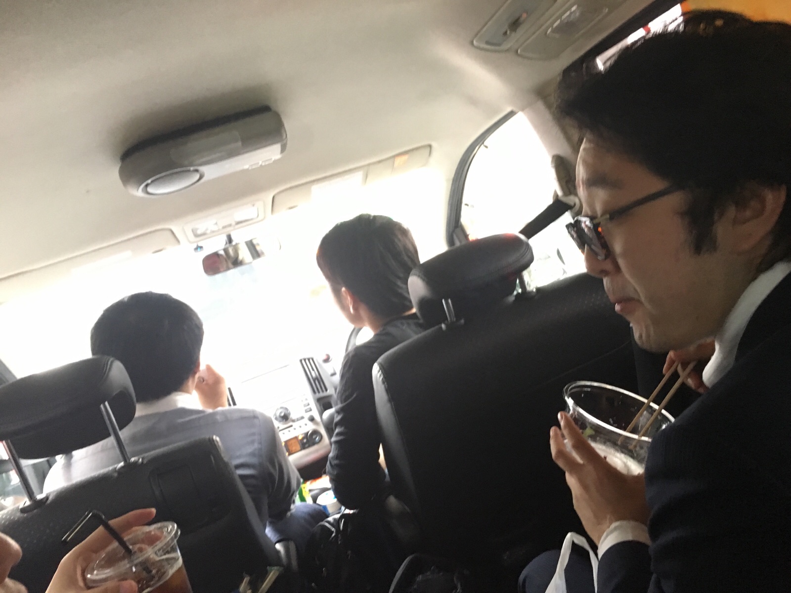 車の中で食べてます。