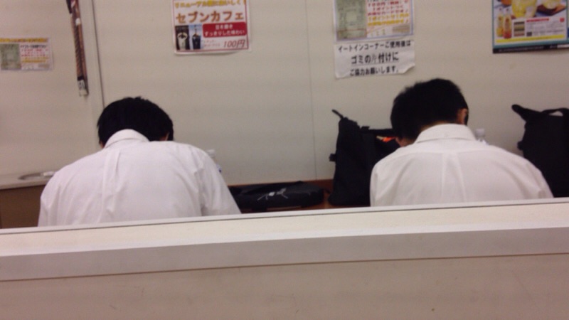 セブンでケチカフェ? してます笑 中学生たちも 小腹を満たしています (^^) oji